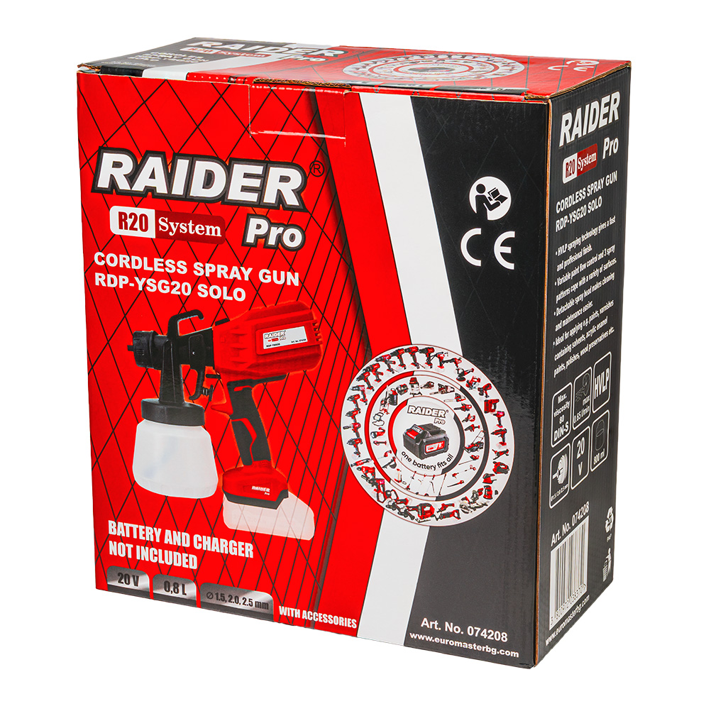 Акумулаторният пистолет за боядисване RDP-YSG20 от серията Raider Pro R20 е практично решение за нанасяне на бои, лакове и други течни покрития върху различни повърхности – дърво, метал, пластмаса и други.