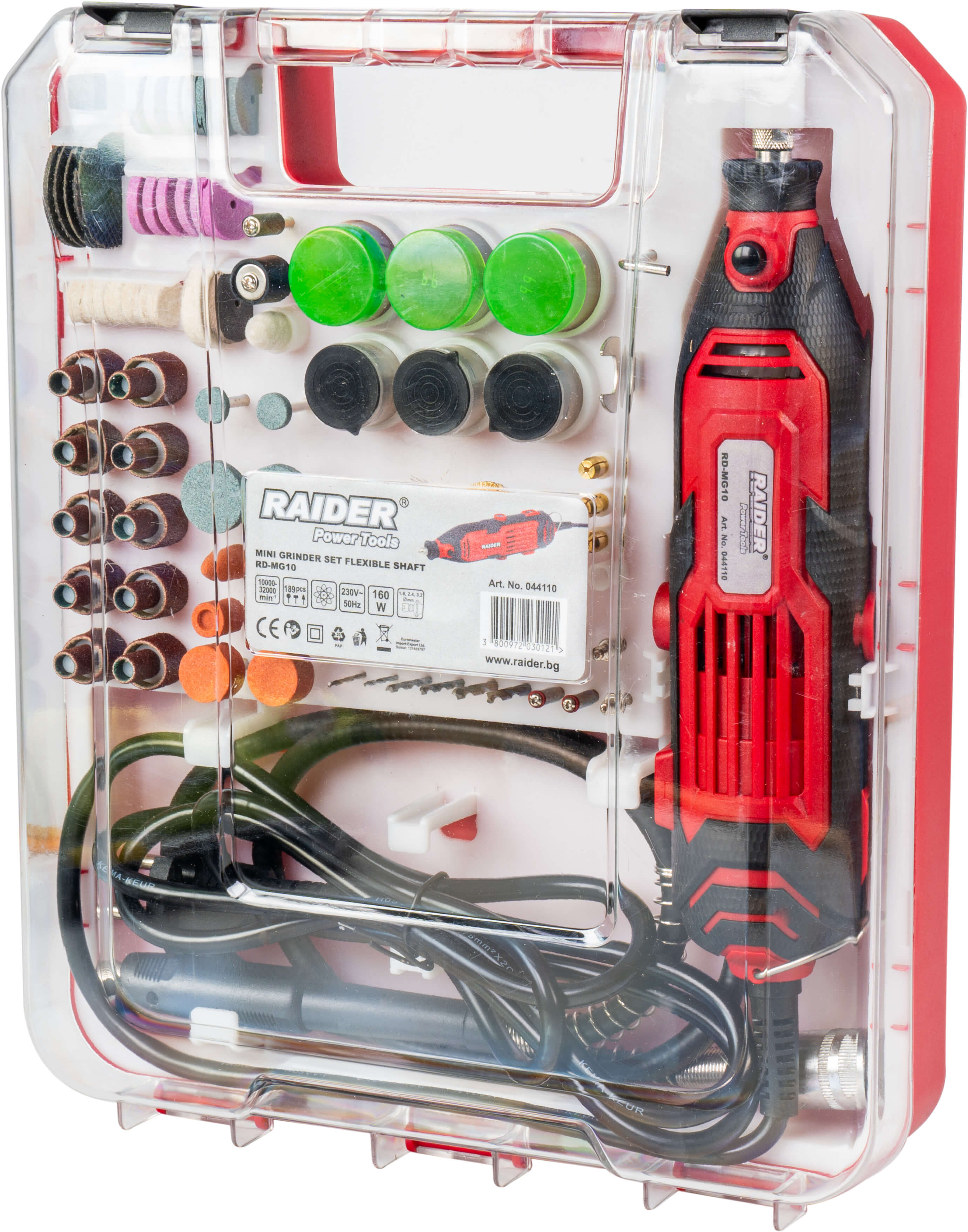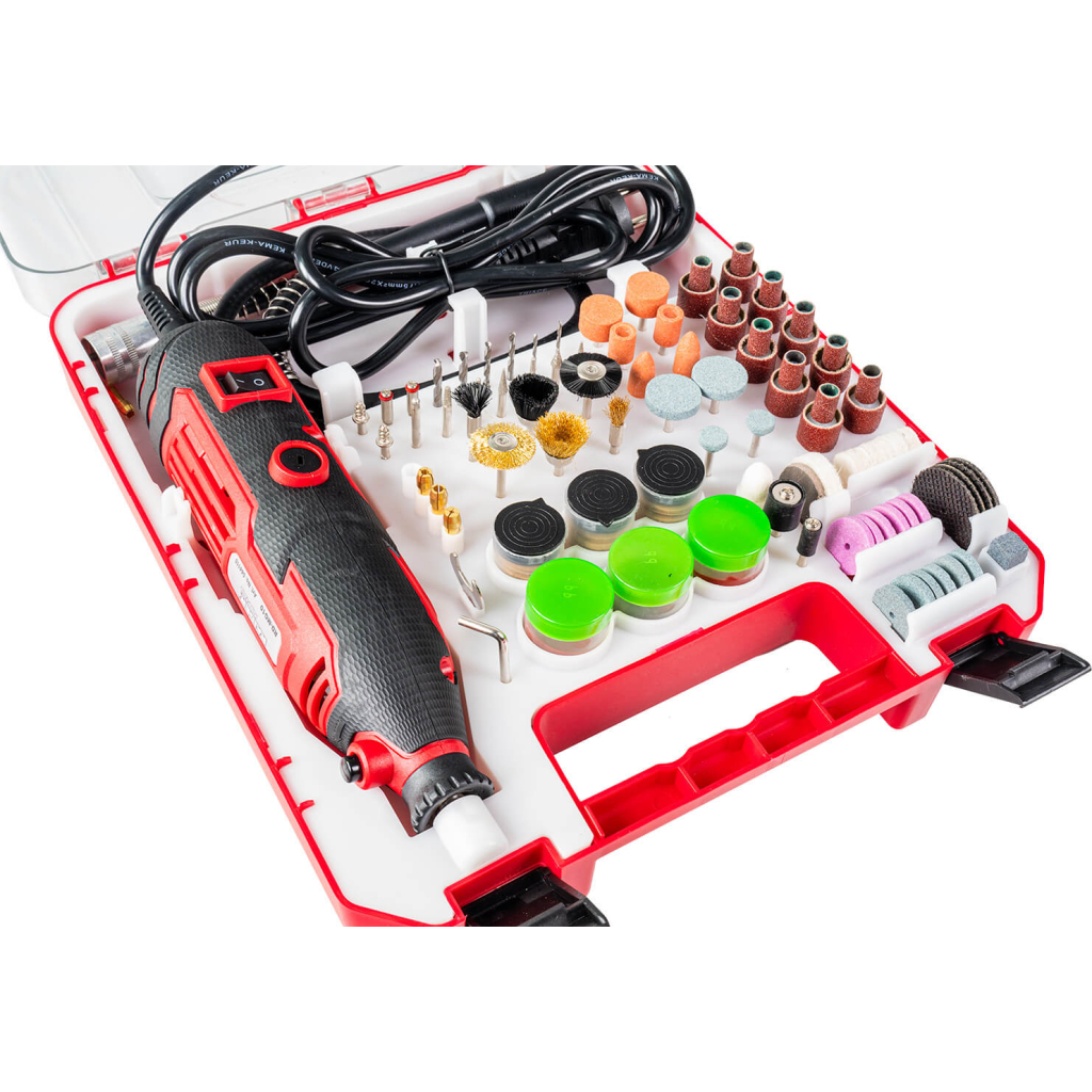 • Включени 189 аксесоара, които улесняват работният процес и позволяват разнообразни видове шлифоване