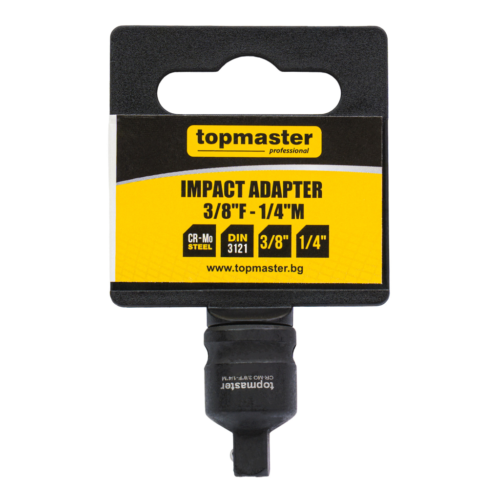 • Ударен адаптер от хром-молибденова стомана ( Cr-Mo ), предназначен за използване на вложки 1/4" с инструменти с 3/8" захват.