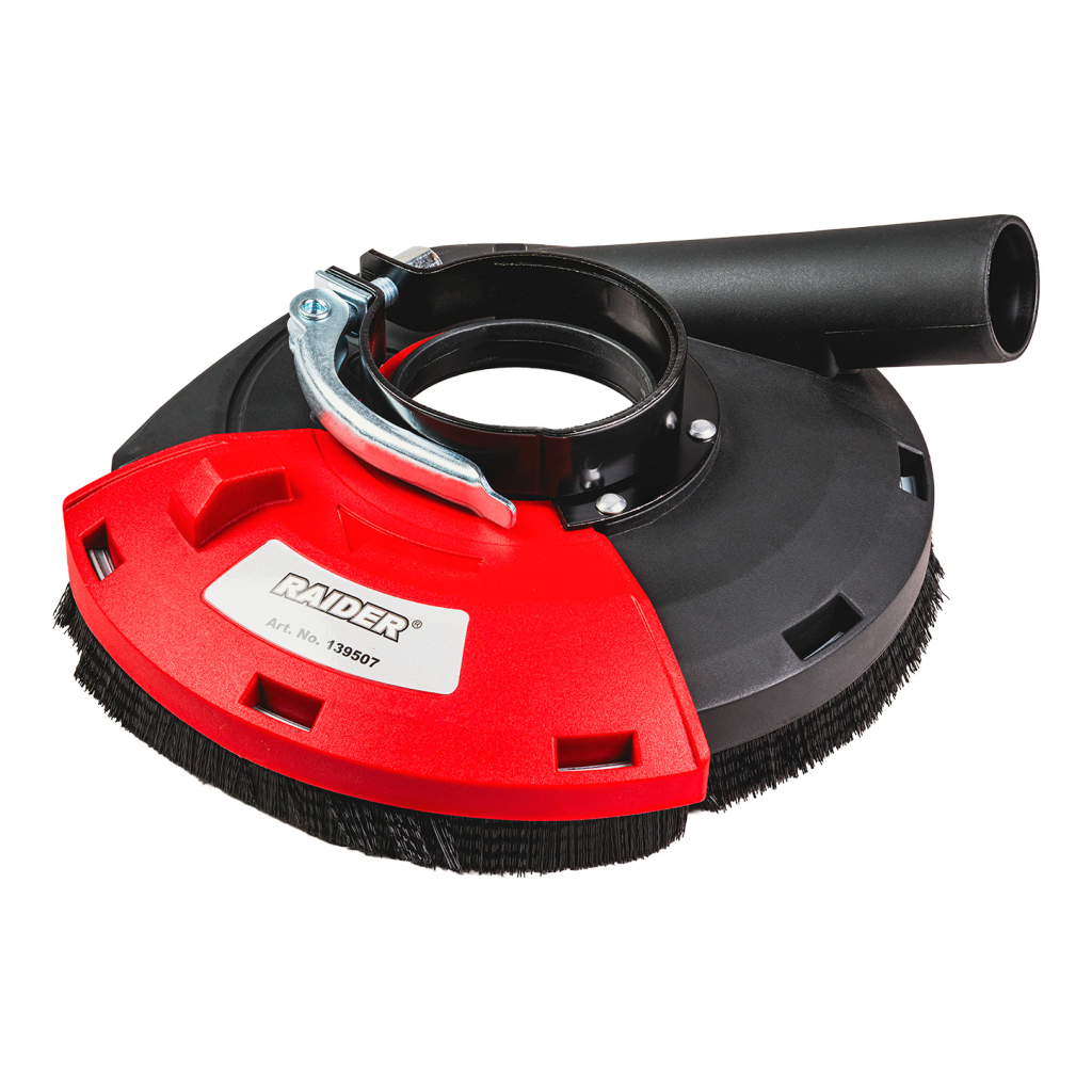 Предпазителят за прахоулавяне е специализирана приставка, предназначена за монтаж върху ъглошлайфове с диаметър на диск от 180 mm. Той ефективно събира и отвежда праха, образуван при шлайфане, рязане или зачистване на метални, дървени и композитни материали. Приставката значително подобрява безопасността на работната среда и поддържа видимостта на обработваната повърхност, като едновременно защитава оператора и инструмента от прахови частици.