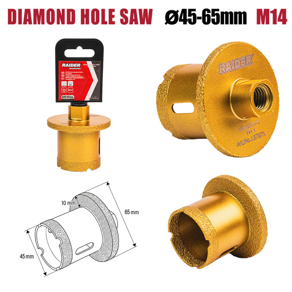 Този модел е предназначен да пробива отвор с началeн диаметър Ø45 mm, след което позволява неговото оформяне до Ø65 mm чрез шлайфане на стените на отвора, като осигурява точен и чист резултат.
