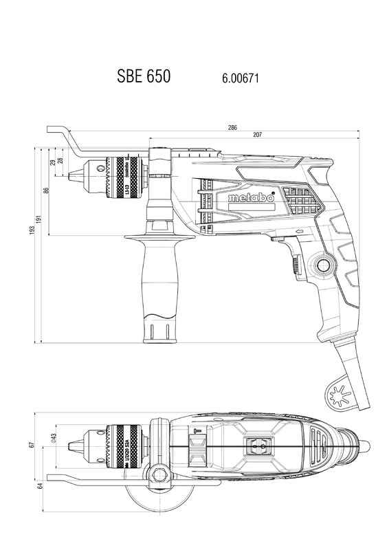 Моделът ударна бормашина Metabo SBE 650 SSBF разполага с: