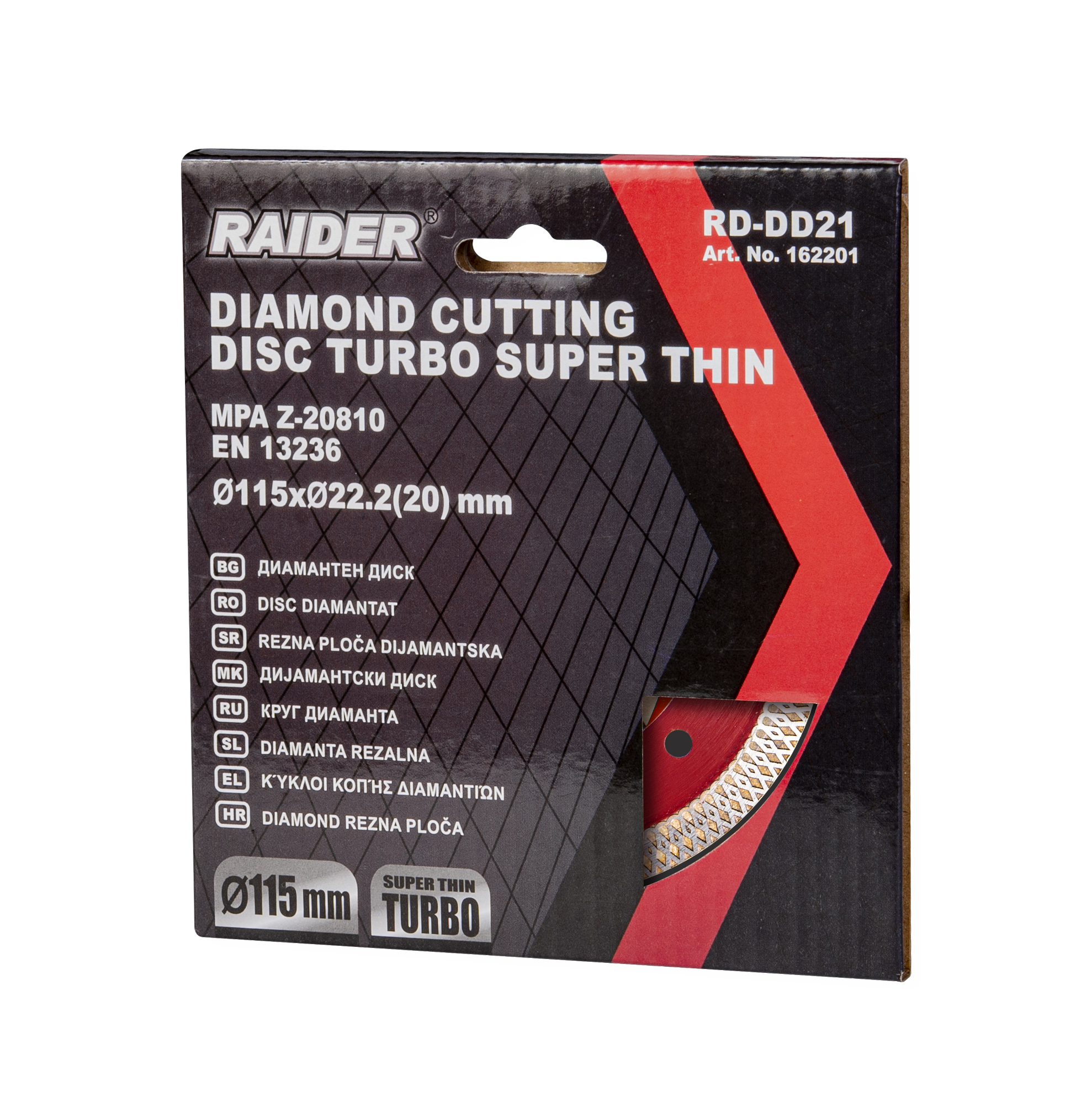 Диск диамантен TURBO тънък 115x22.2mm RAIDER RD-DD21 |