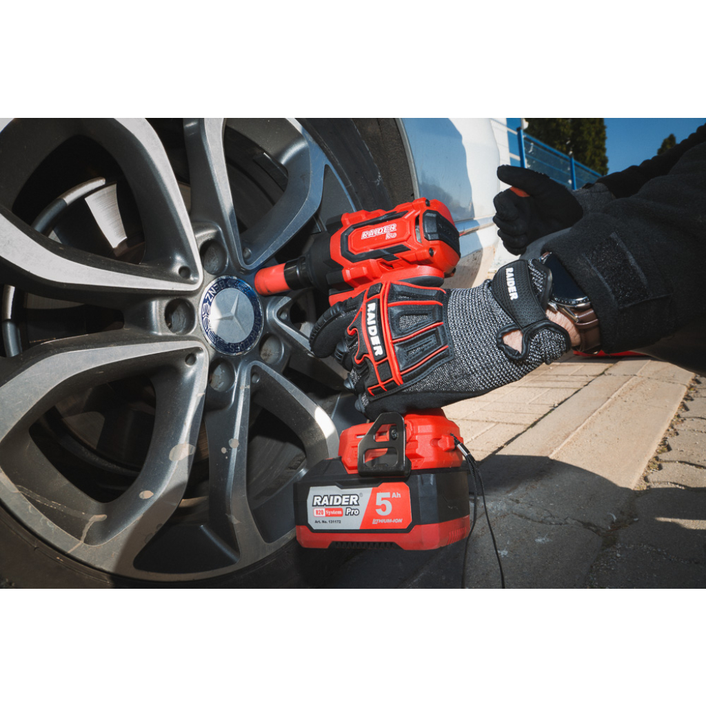Raider RDP-90BBIW20 от серията R20 е високоефективен акумулаторен ударен гайковерт, създаден за тежки натоварвания и взискателни професионални задачи. Със своя впечатляващ въртящ момент от 900 Nm, той е идеално решение за разхлабване и стягане на здраво фиксирани гайки и болтове, включително при автомобилна поддръжка, метални конструкции и сглобки.