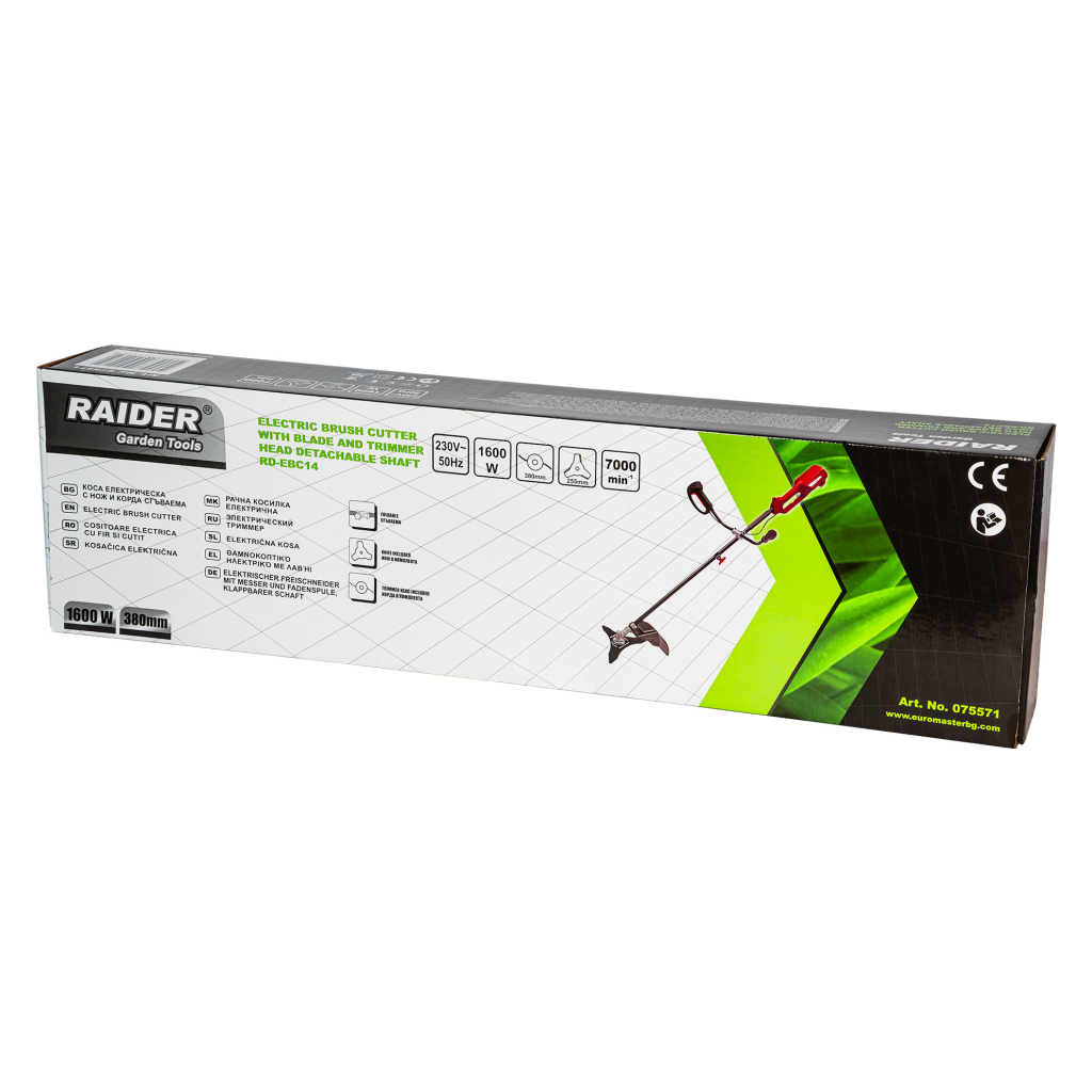 Електрическата коса RD-EBC14 е мощен и практичен инструмент с мощност 1600 W, предназначен за косене на трева, плевели и по-гъста растителност в дворове, градини и тревни площи. Моделът работи със захранващо напрежение 230 V и честота 50 Hz, което го прави подходящ за стандартната електрическа мрежа.