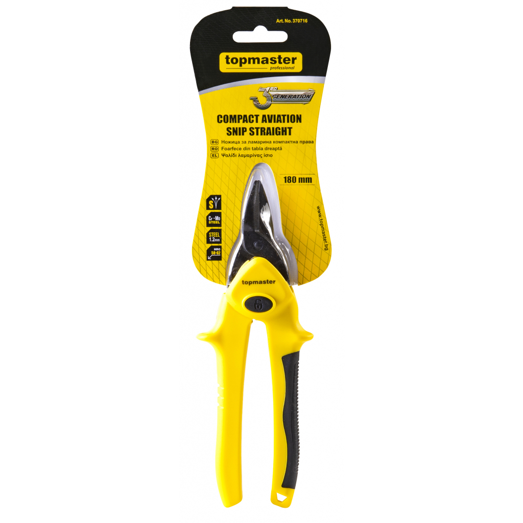 Компактна права усилена ножица за ламарина на Topmaster се отличава с: