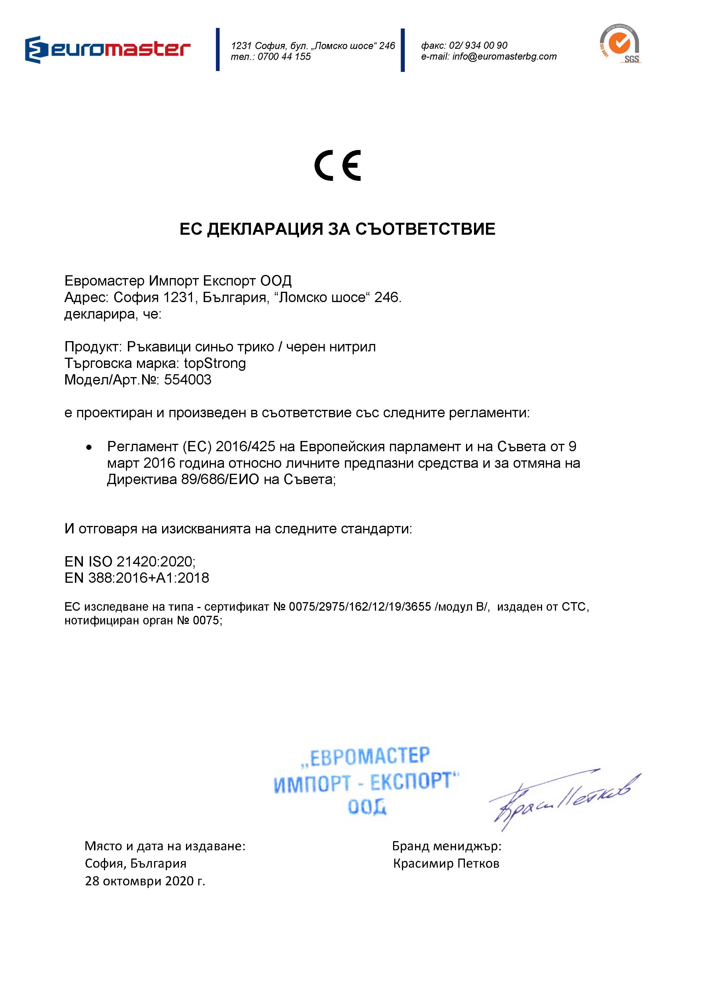 ЕС ДЕКЛАРАЦИЯ ЗА СЪОТВЕТСТВИЕ Изтегли