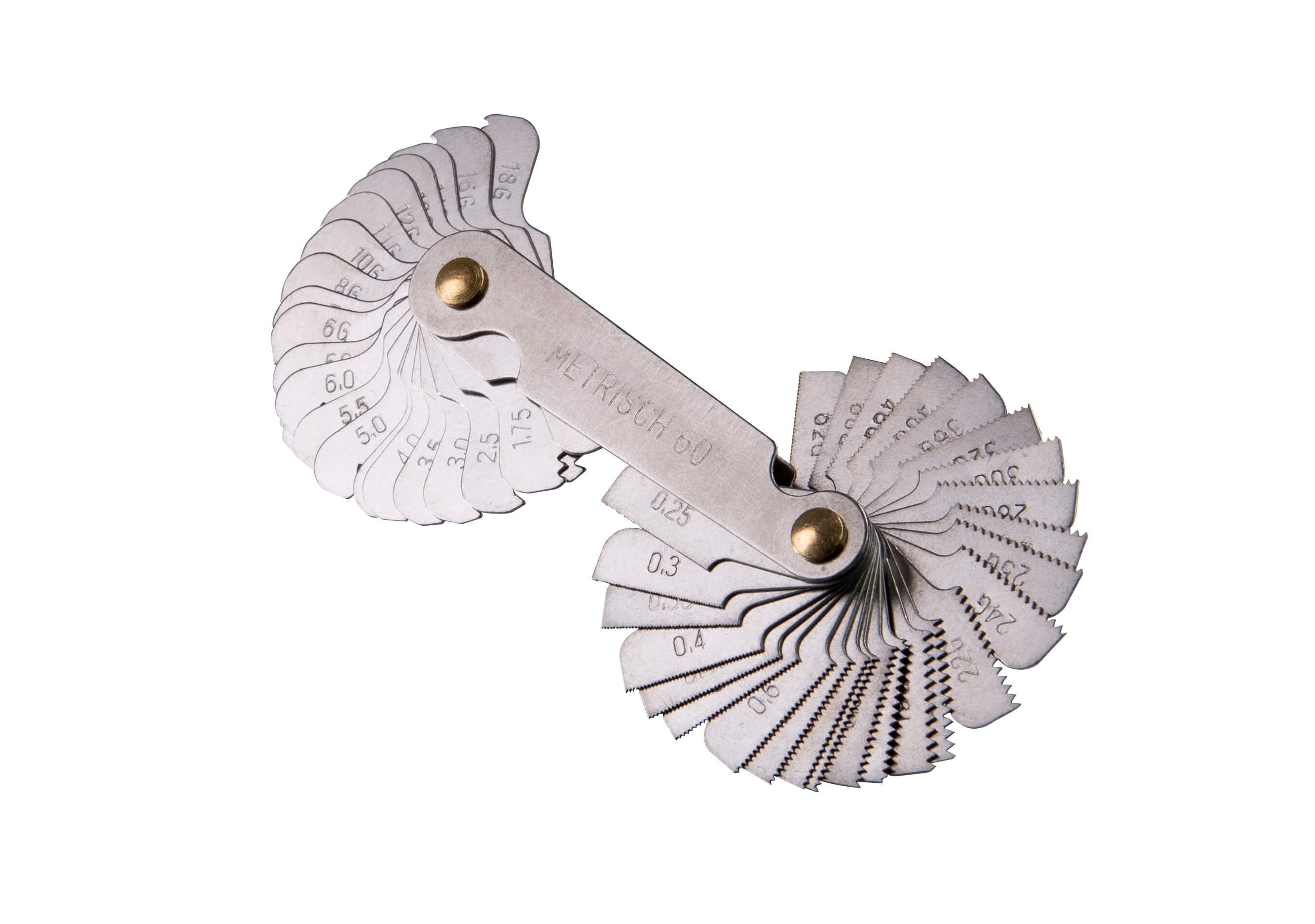 • Бързо и лесно определяне стъпката на резбата на винт или резбови отвор, като съдържа 52 брооя ламели със стъпка от 0.25 до 6mm