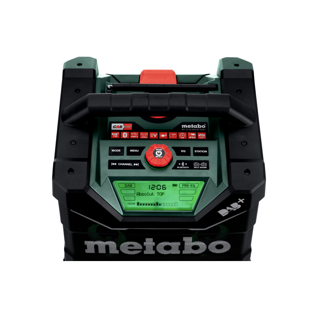 Радиото е съвместимо с Metabo акумулаторни батерии от 12V до 18V. Това го прави много универсално в работна среда