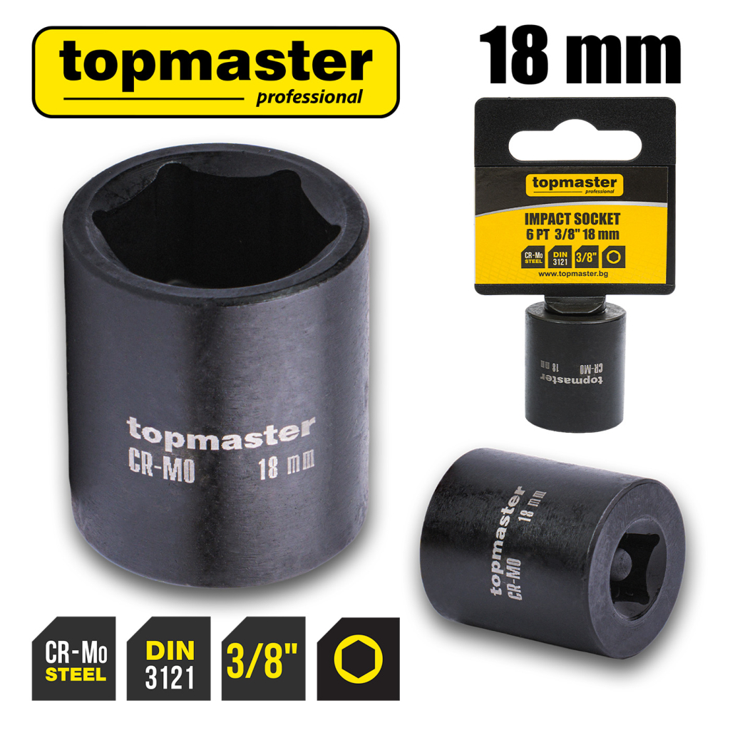 • Ударната вложка TMP 3/8" x 18 mm е проектирана за професионална употреба при високи натоварвания.