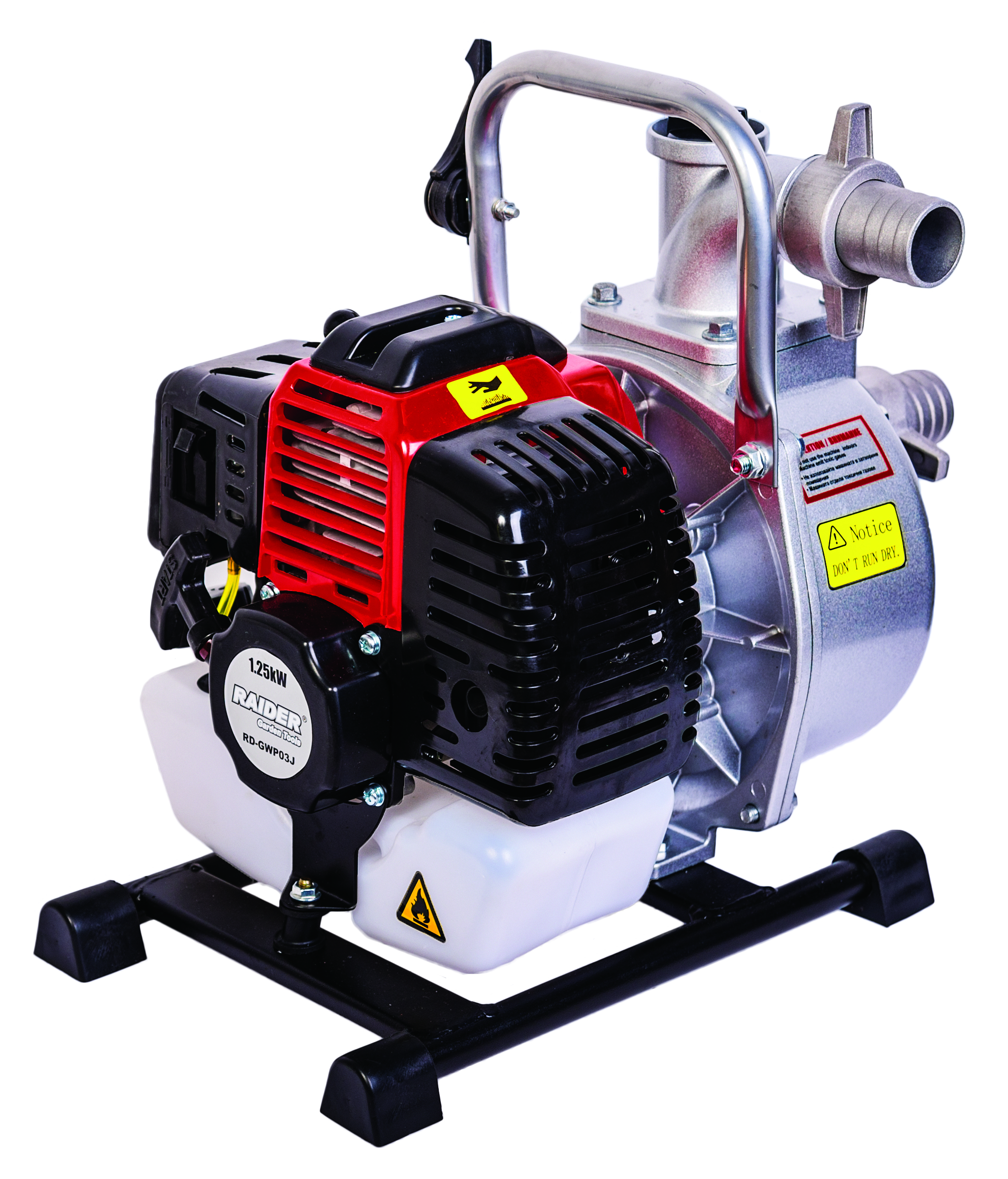 Gasoline Water Pump RD-GWP03J is intended for use in areas where there is no power grid. Suitable for pumping pools and large catchments. The model is powered by a 1.6-cylinder single-cylinder two-stroke gasoline engine.