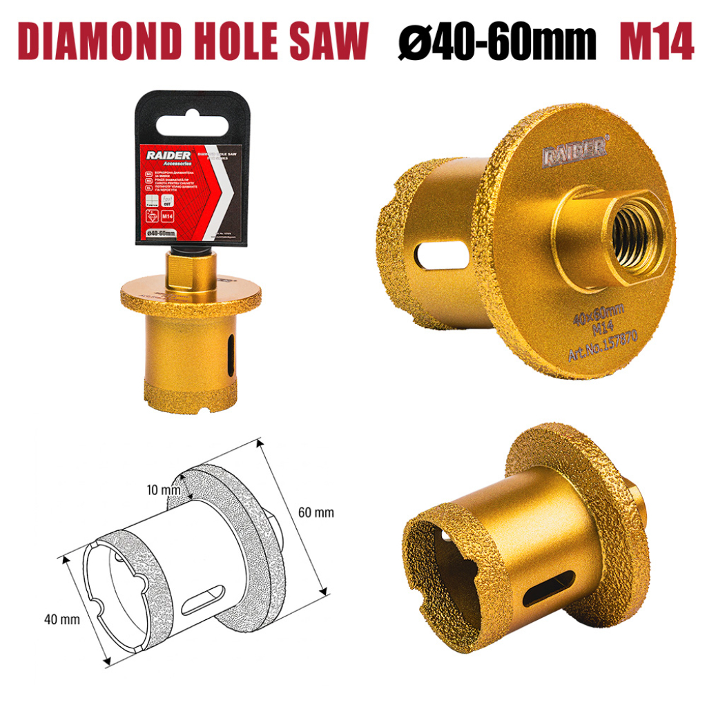 • It enables drilling a Ø40 mm hole and subsequently shaping it up to Ø60 mm by grinding.