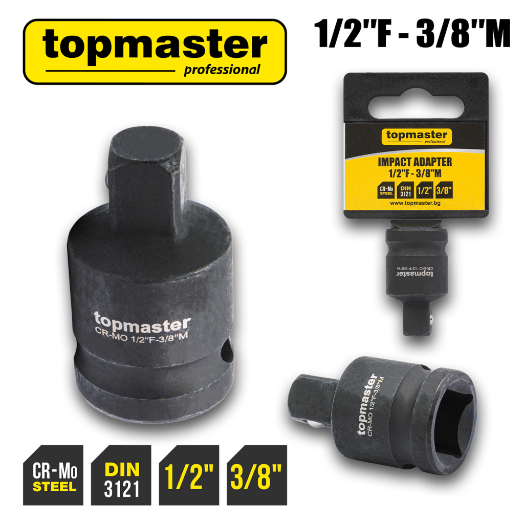 Datorita tratamentului termic conform DIN 3121, adaptorul este complet adecvat pentru cheile de impact. Prinderea mama de 1/2" permite conectarea la unelte puternice, in timp ce prinderea tata de 3/8" permite utilizarea cheilor tubulare mai mici cu o precizie mai mare.