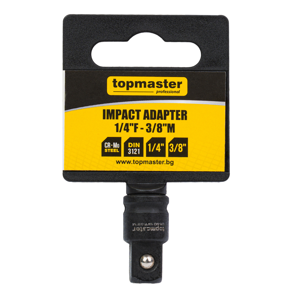 Закаляването по DIN 3121 гарантира безопасна работа при ударни приложения. Адаптерът позволява използването на вложки 3/8" с инструменти, оборудвани с 1/4" присъединителен размер.