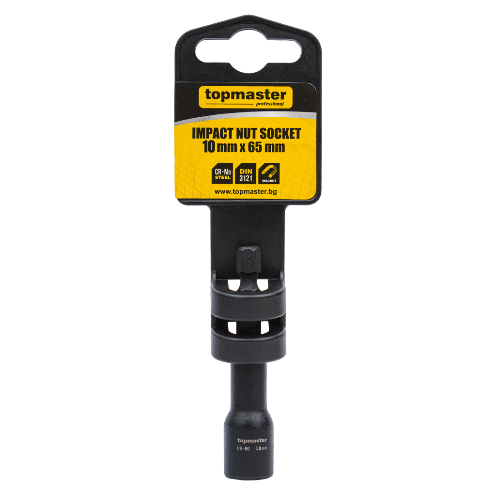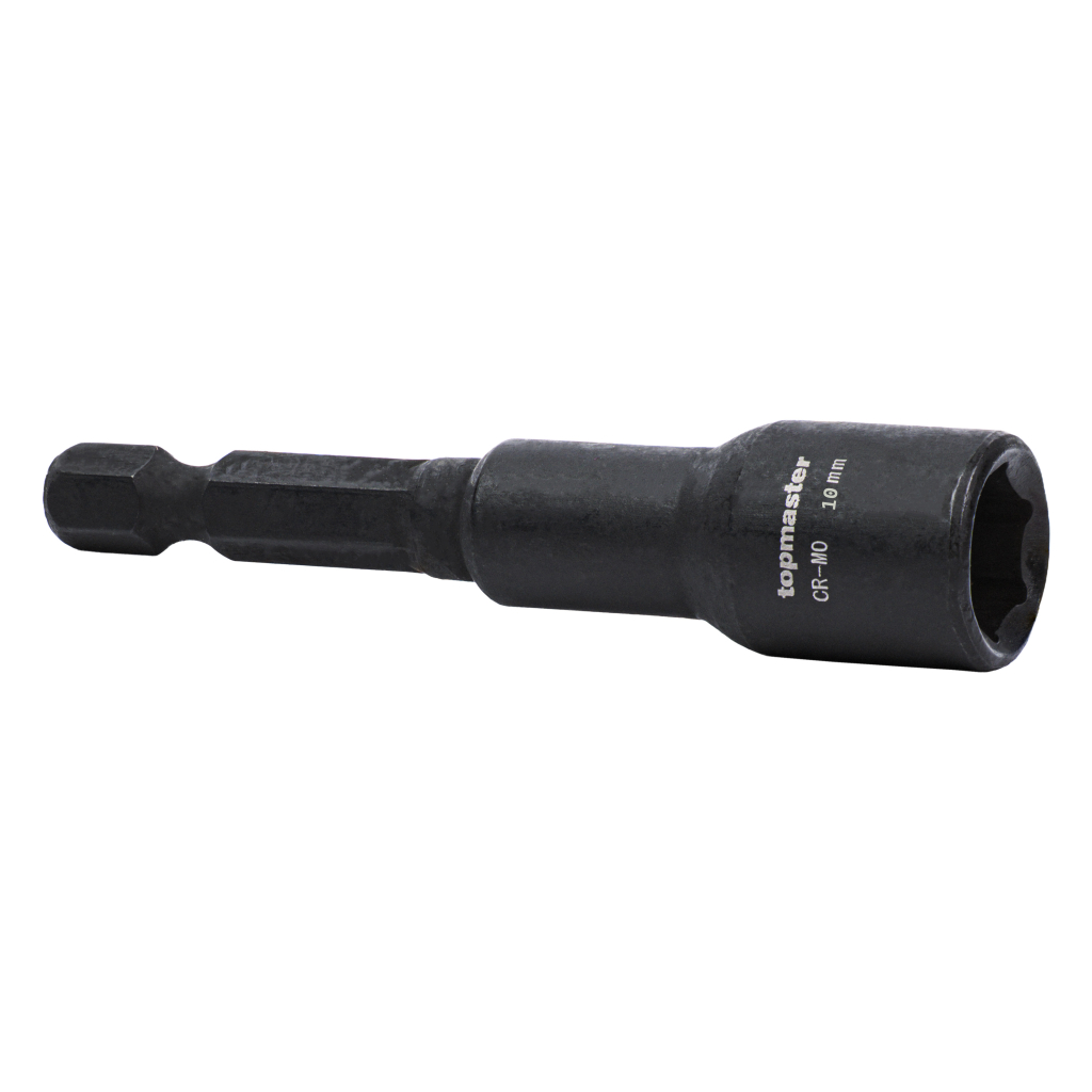 Adaptorul magnetic tubular de impact pentru suruburi autoforante Topmaster (TMP) de 10 mm x 65 mm este conceput pentru utilizare profesionala cu masini de gaurit si surubelnite de impact, unde sunt necesare durabilitate ridicata si precizie.