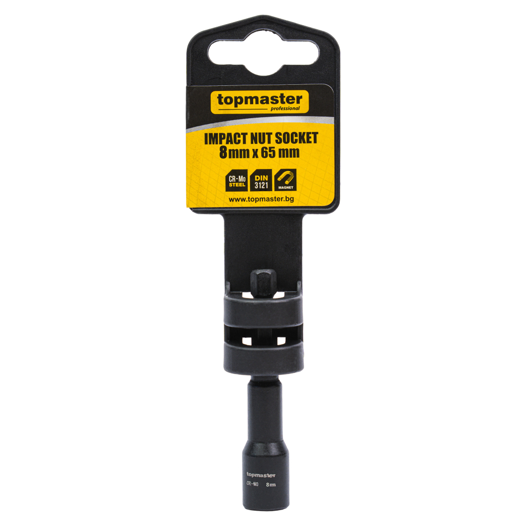 Adaptorul magnetic tubular de impact pentru suruburi autoforante Topmaster (TMP) de 8 mm x 65 mm este conceput pentru utilizare profesionala cu masini de gaurit si surubelnite de impact, unde sunt necesare durabilitate ridicata si precizie.