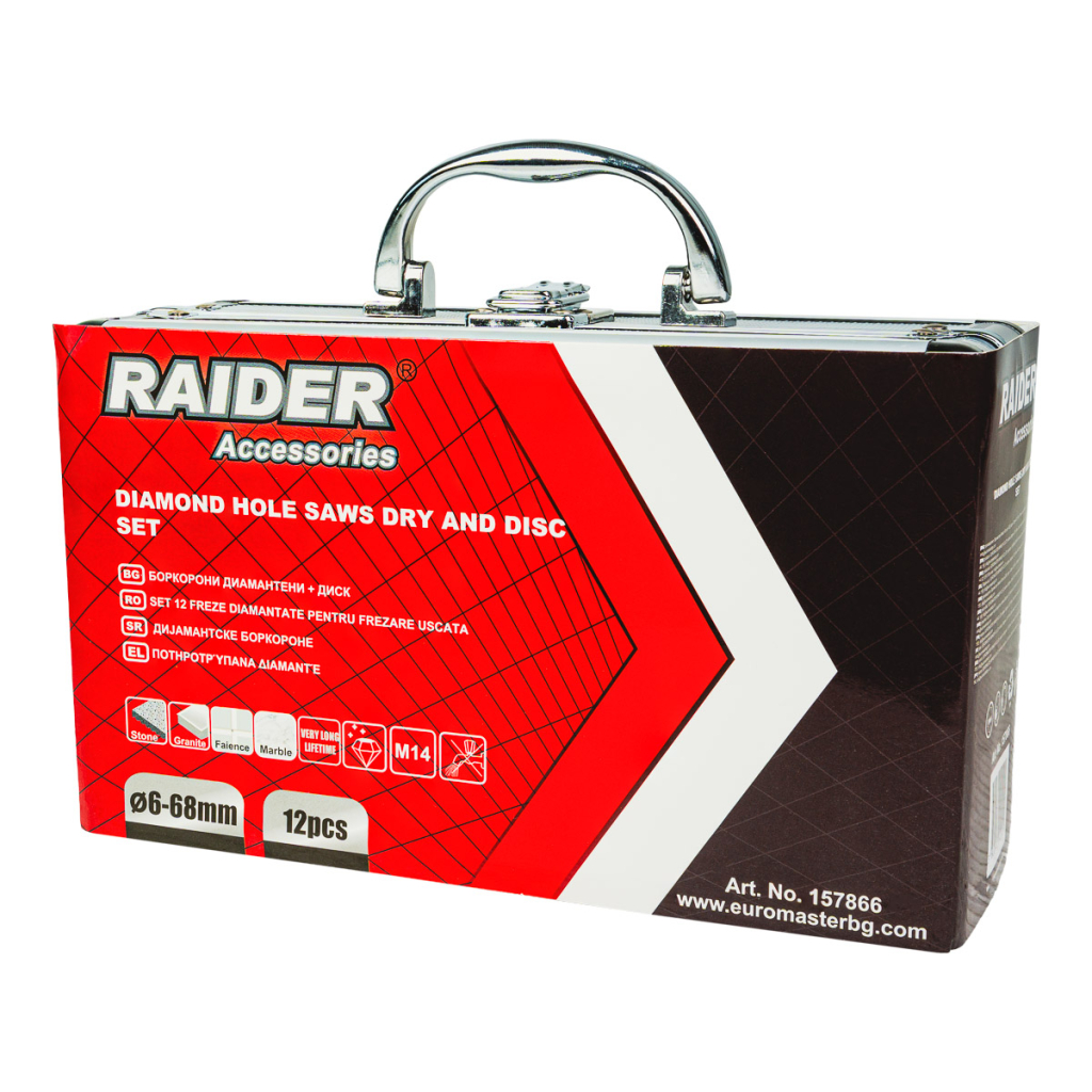 • Комплектът включва боркорони с различни диаметри – от 6 mm до 68 mm, което осигурява голяма гъвкавост и възможност за изпълнение на разнообразни задачи – от малки прецизни отвори до по-големи монтажни отвори.