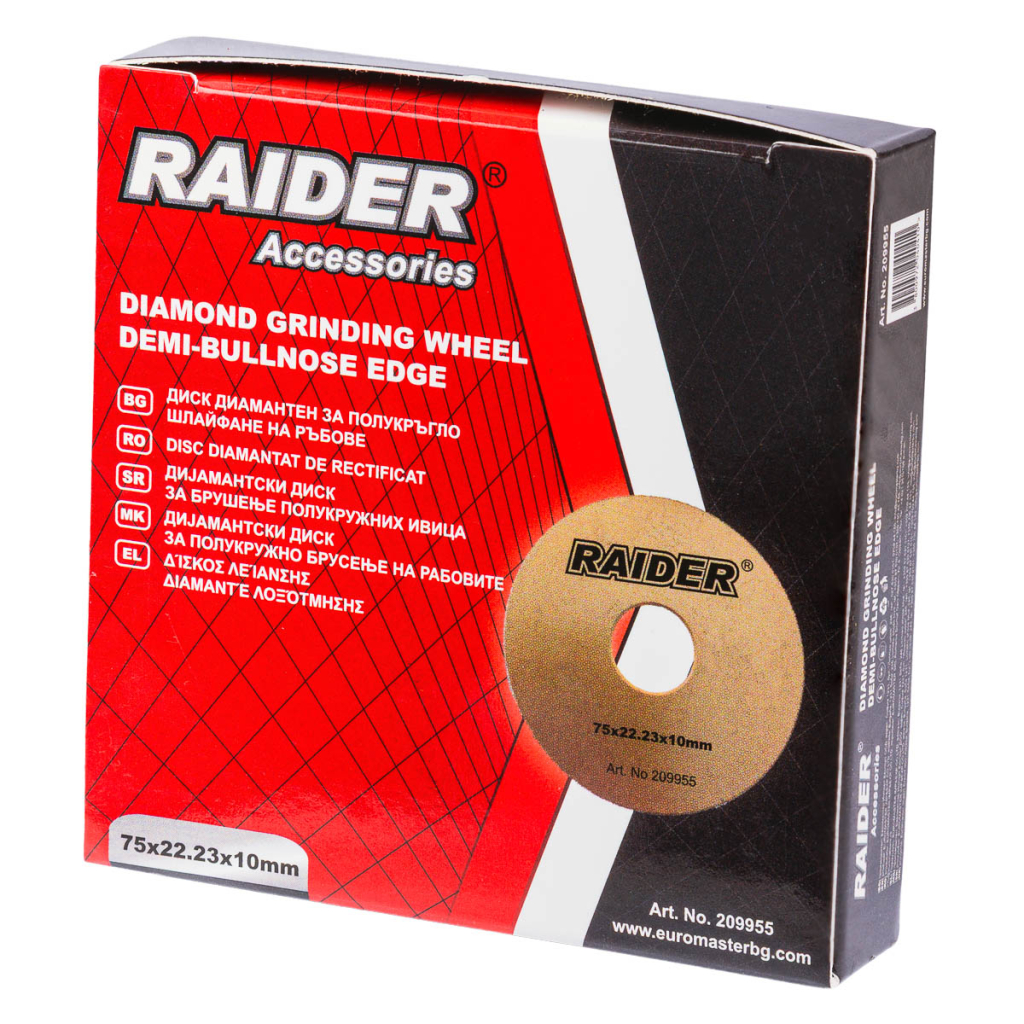 • Диамантеният диск с дебелина 10 mm и полукръгъл (деми-бълноуз) профил е предназначен за прецизно и детайлно шлифоване на ръбове.