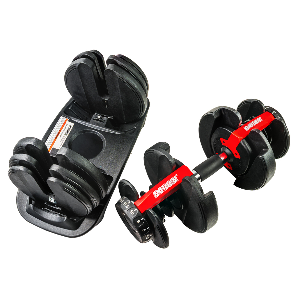 Ganteră Reglabilă 24 kg GYM RAIDER – Forță și versatilitate compactă într-o singură mână