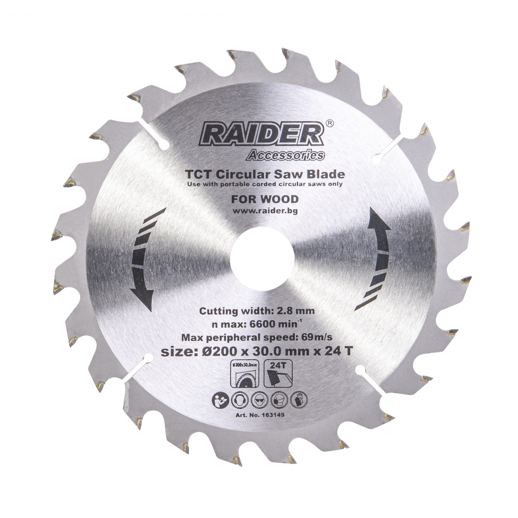 Дискът за циркуляр на RAIDER е идеален за точно и качествено рязане на обработваемото дърво. Намира приложение както във вътрешните довършителни работи, така също и на строителната площадка.