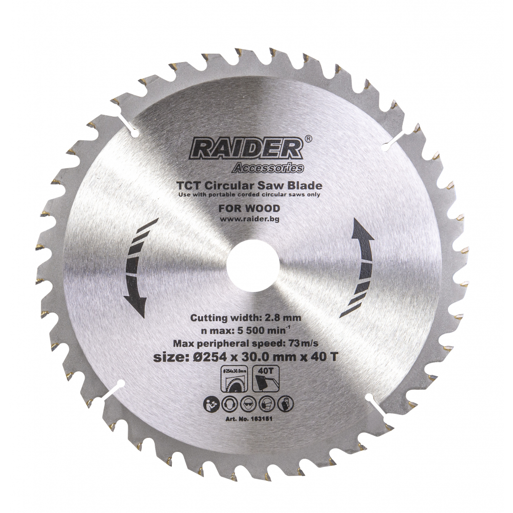 Дискът за циркуляр на RAIDER е идеален за точно и качествено рязане на обработваемото дърво. Намира приложение както във вътрешните довършителни работи, така също и на строителната площадка.