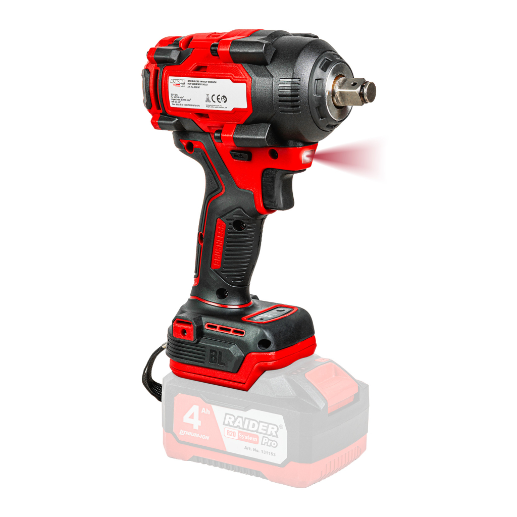 Raider RDP-90BBIW20 от серията R20 е високоефективен акумулаторен ударен гайковерт, създаден за тежки натоварвания и взискателни професионални задачи. Със своя впечатляващ въртящ момент от 900 Nm, той е идеално решение за разхлабване и стягане на здраво фиксирани гайки и болтове, включително при автомобилна поддръжка, метални конструкции и сглобки.