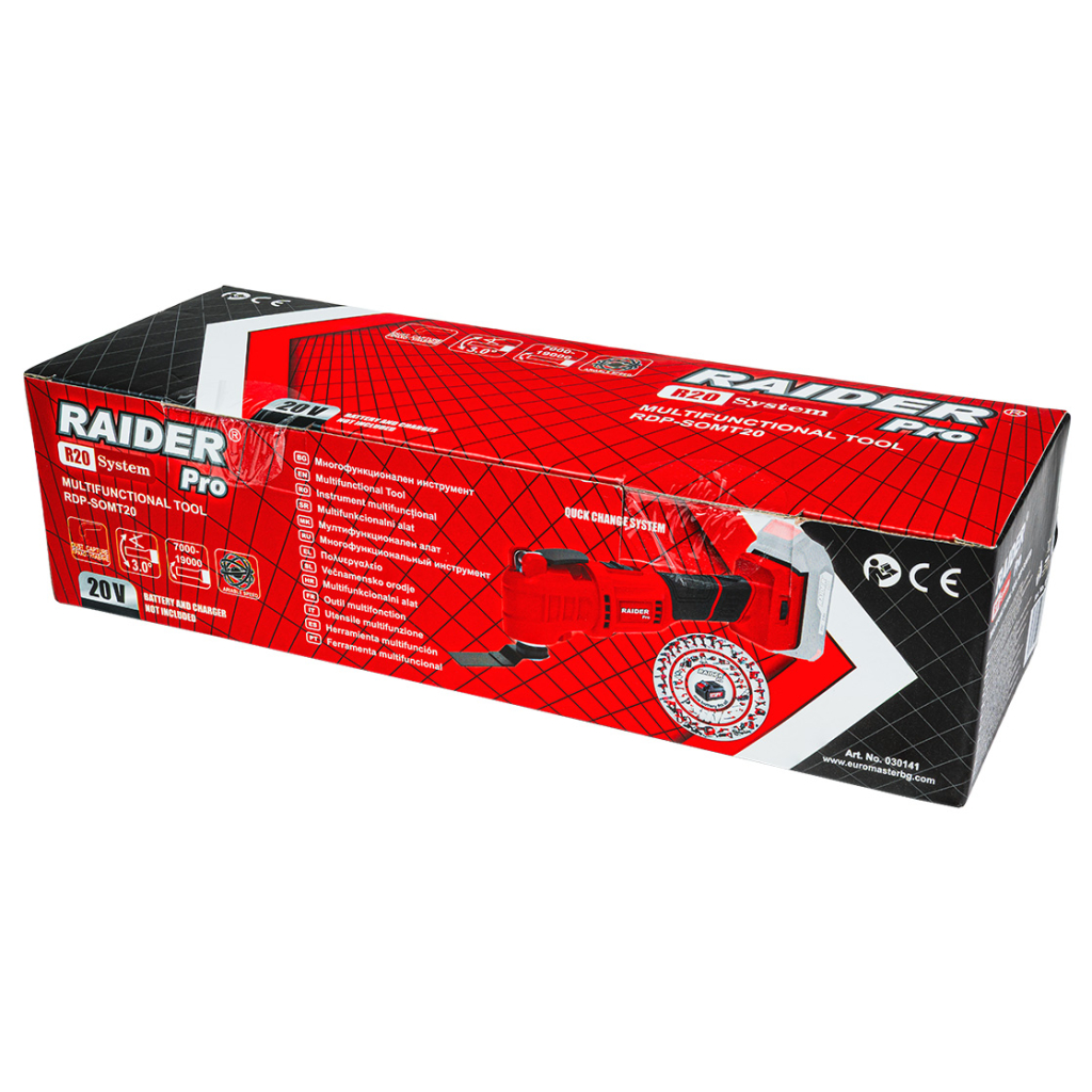Това което свързва машините от серията Raider Pro R20 в единно обособено семейство е, че всички те са пригодени да работят с еднотипни, една или повече, литиево-йонни акумулаторни батерии с изходящо напрежение 20V.