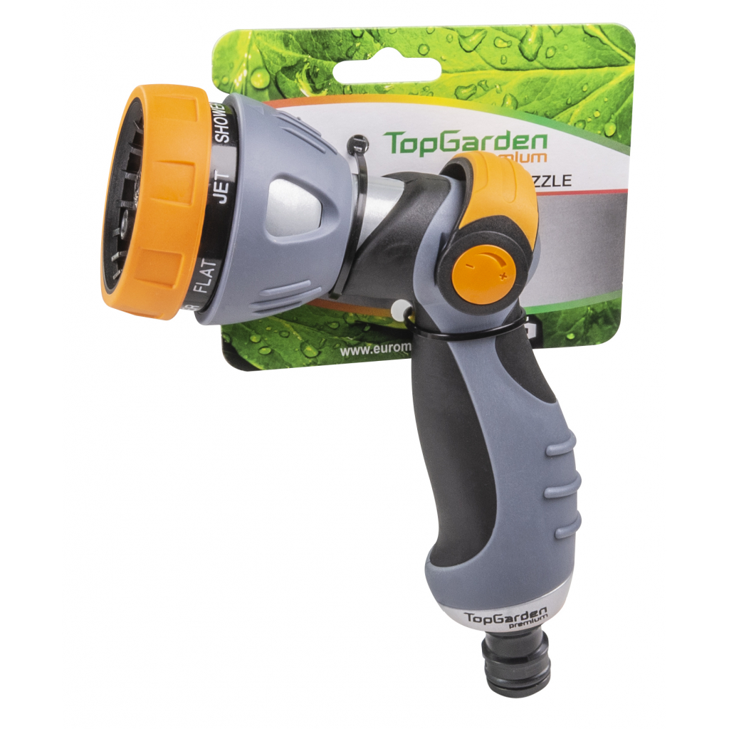 • Снабден е с регулируем накрайник, който осигурява седем режима на поливане