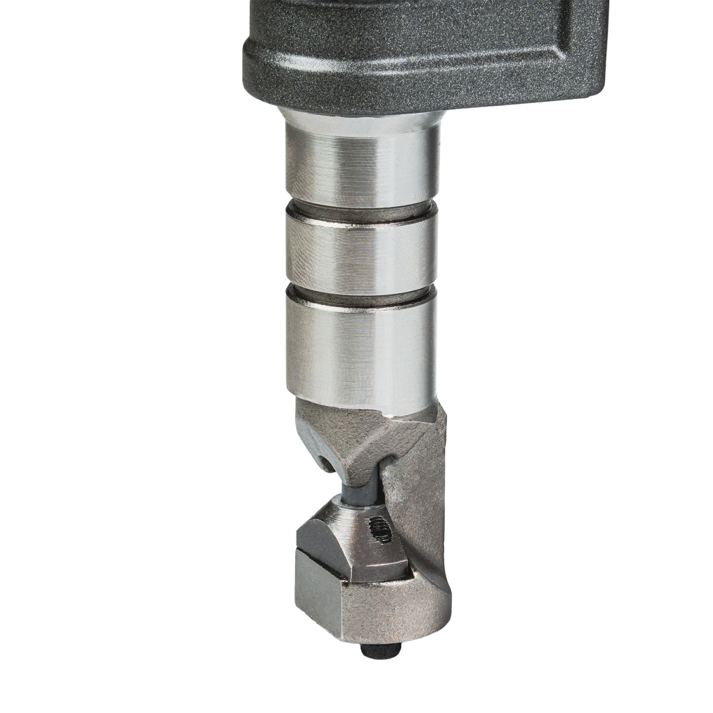 Нагерът е подходящ както за прави, така и за криволинейни разрези, позволява изрязване на вътрешни отвори и работа с малки радиуси. Минималният радиус на рязане от 45 mm (вътрешен) и 50 mm (външен) дава възможност за изпълнение на сложни форми и детайлни контури, което го прави особено полезен при фина метална обработка.