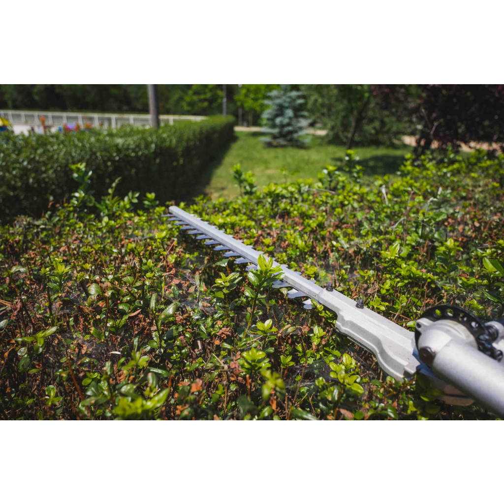 • The machine can be used as a grass cutter with a blade and cord, which allows easy and quick maintenance of lawns. The hedge trimmer is ideal for trimming shrubs and hedges, providing a precise and clean cut. The branch cutter is perfect for pruning trees and shrubs, which promotes healthy plant growth.