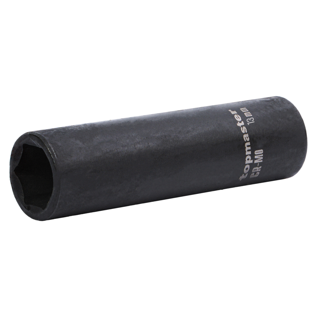The extended impact socket is made of high-quality chrome-molybdenum steel (Cr-Mo), offering exceptional strength, resistance to impact loads, and long-lasting performance for intensive professional use.