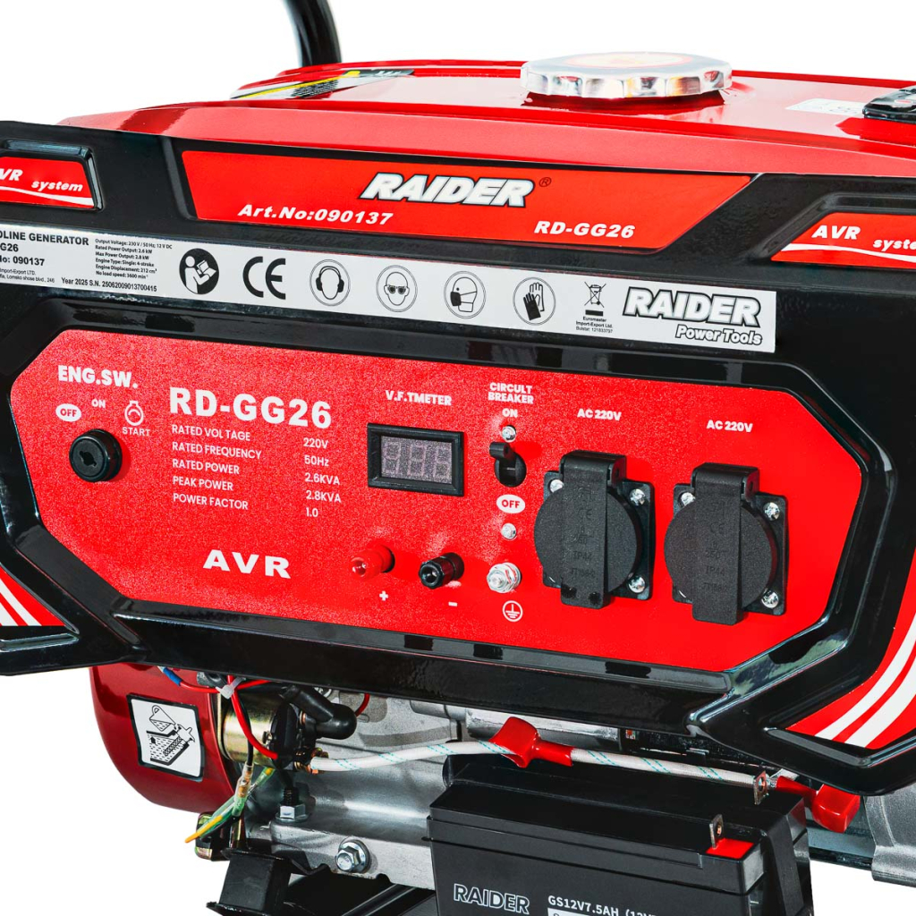 • Generatorul pe benzina RD-GG26 este o sursa fiabila de energie electrica, conceputa pentru a asigura alimentare stabila acolo unde nu exista acces la reteaua electrica sau in situatii de urgenta. Este un echipament puternic si eficient, folosit atat in gospodarie, cat si in medii profesionale – pe santiere, in ateliere, pentru lucrari de instalatii, camping sau alte activitati in aer liber. Cu o putere nominala de 2.8 kW, RD-GG26 ofera functionare constanta si stabila, putand alimenta diferite scule electrice si electrocasnice.